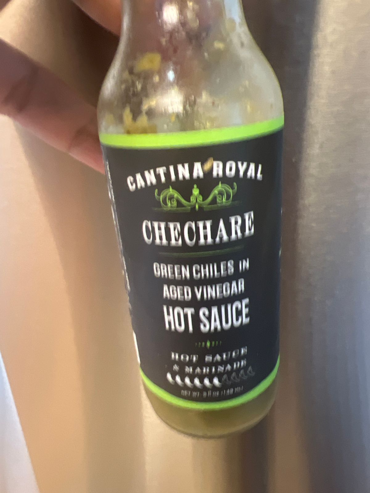 Most green hot sauces are made fresh. Chechare's chiles are aged for over a year in a house-made cilantro and bay leaf vinegar — a living, evolving sauce with roots going back to Cantina Royal's Brooklyn restaurant opening in 2010. There's nothing else like it.